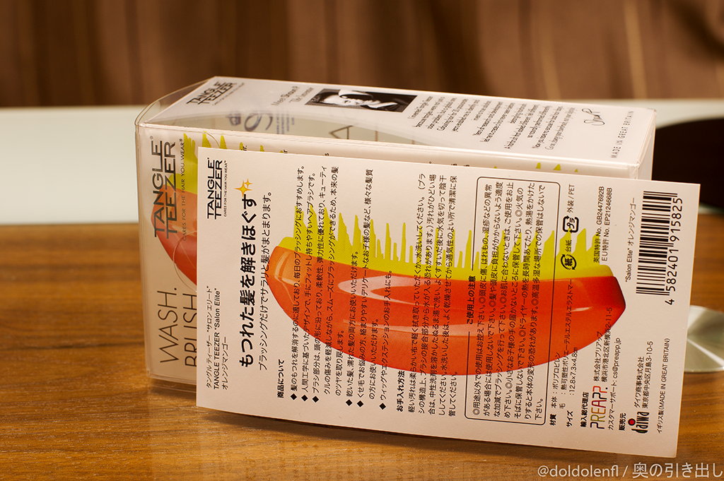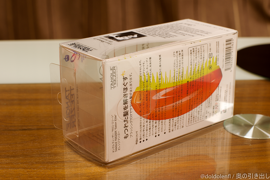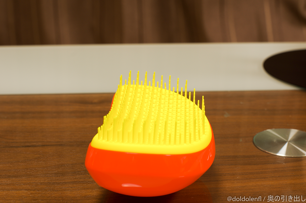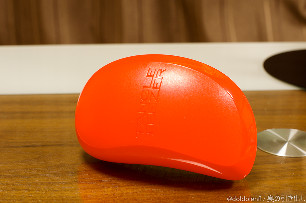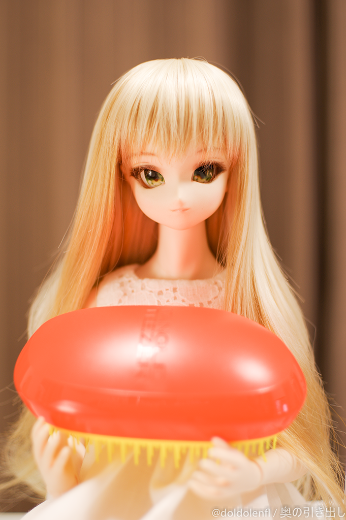 うちに届いたタングルティーザーです。外で落とした時にすぐ見つかる色がいいなと思って、マンゴーオレンジにしました。ドールオーナーさんがよく買っているのは『コンパクトスタイラー』というものでしたが、コンパクトにはオレンジが無かったので普通サイズのものにしました。