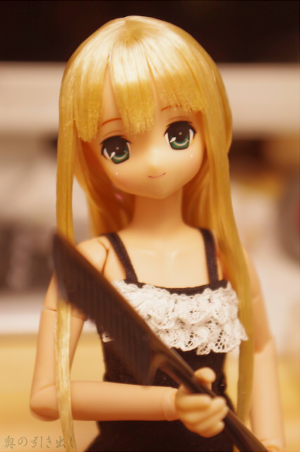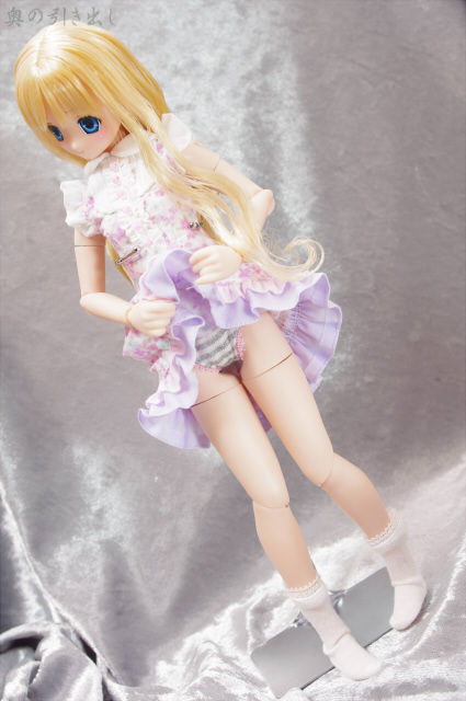 余っているオビツ25cmボディに装着。一足先に乾かしたマヤさんに手伝ってもらいました。オビツボディは自由に動くので、スタンド代わりに使えちゃいます。この姿勢が安定するのであって、決してお尻を眺めてハァハァしているわけではなくてですね!