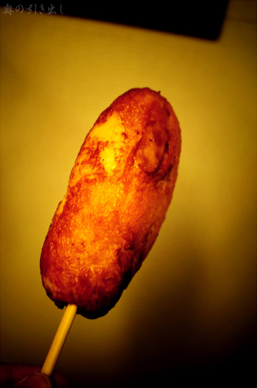 たまねぎ棒、だったかな。かまぼことたまねぎを練り合わせて揚げたもの。アツアツでとても美味しいのです。