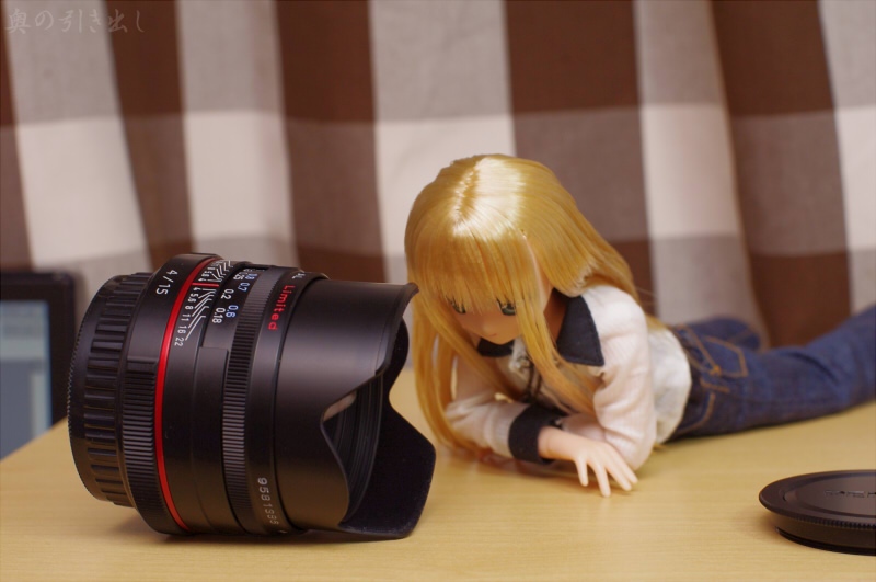 コンパクトながら花形フードが内蔵されています。我が家では43mmF1.9の次に小さいレンズです。