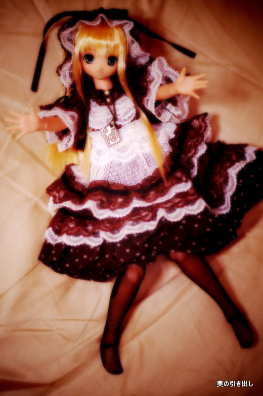 『あとりえさくら』さんのドレスです。珍しくフリフリのチョイスですが、何となくマヤさんに似合いそうだなと思いまして。ヘッドドレスがカチューシャタイプで、着脱が容易なのがポイント高いです。