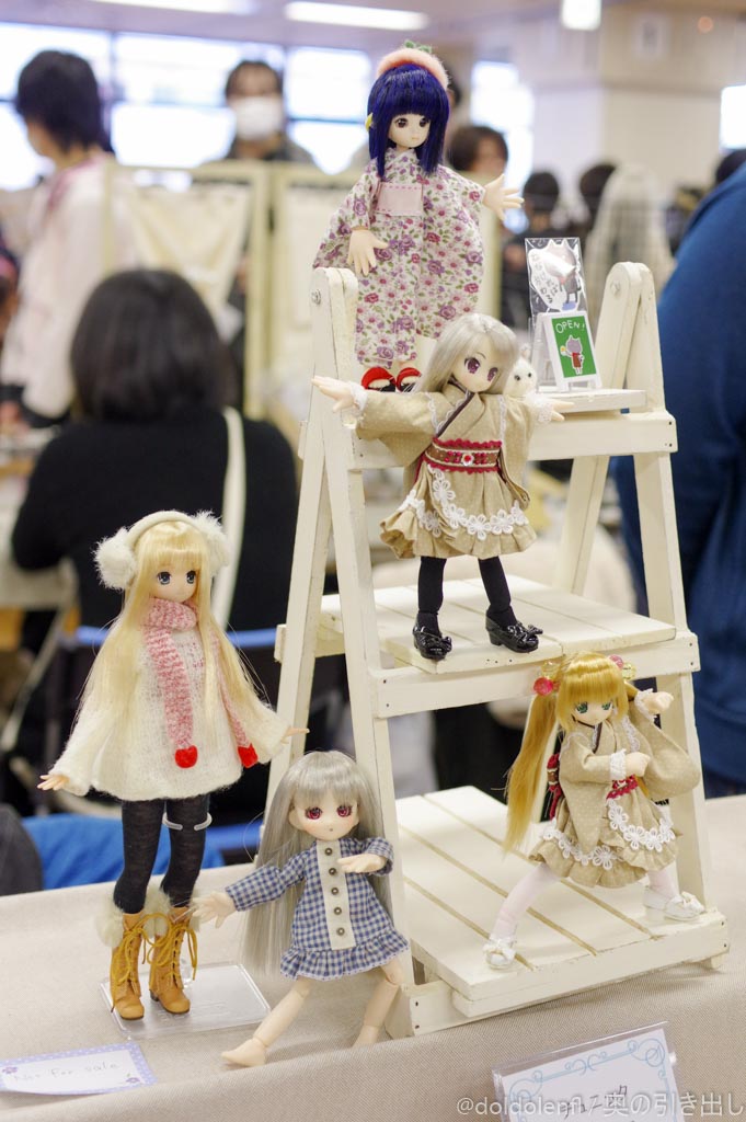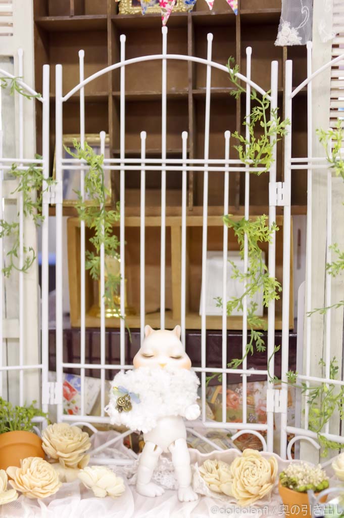 Nanaさんのスペースは大道具も小道具も充実していて、世界観を醸し出しておりました。ドールはもちろんだけど、本棚とか花とか、ドールの世界を構築する道具たちも大切ですね。