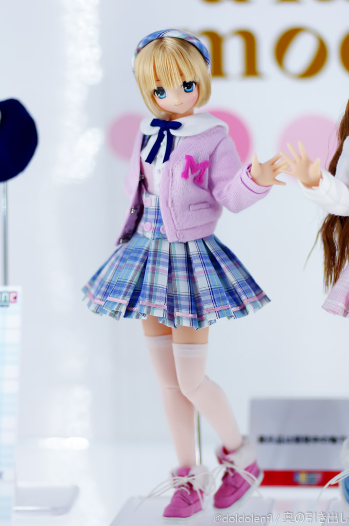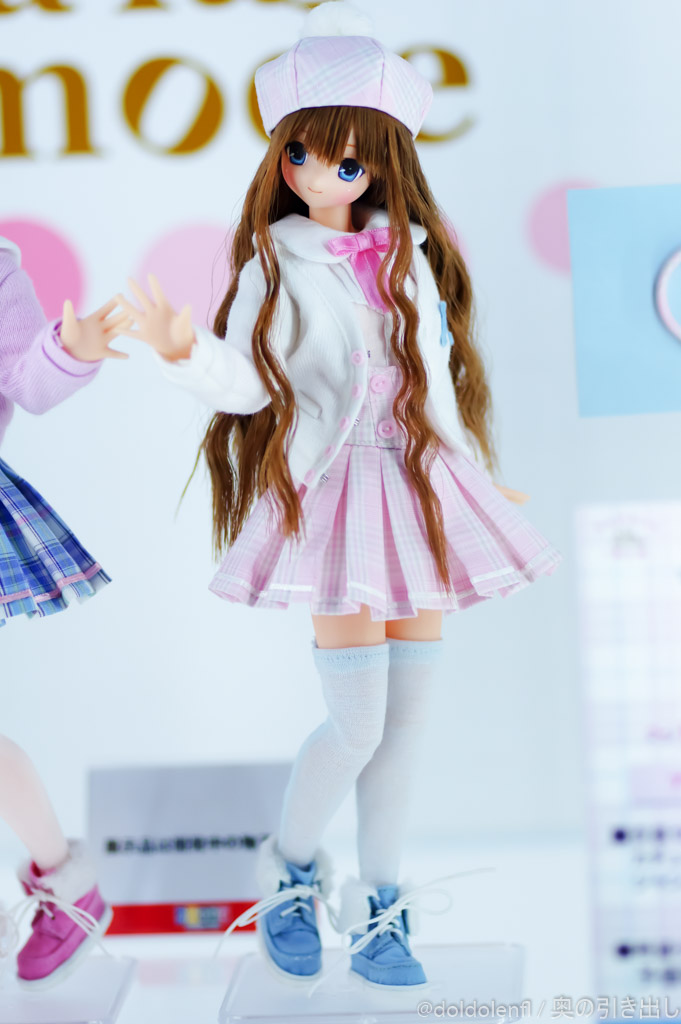 瞳の色はブルー系で、M'sベーカリーのようなコントラストの高い色に見えます。衣装セット内容はどちらも「カチューシャ・ベレー帽・ブラウス・カーディガン・ジャンパースカート・ショーツ・ソックス・シューズ」となっており、両者にデザインの違いは無いようです。